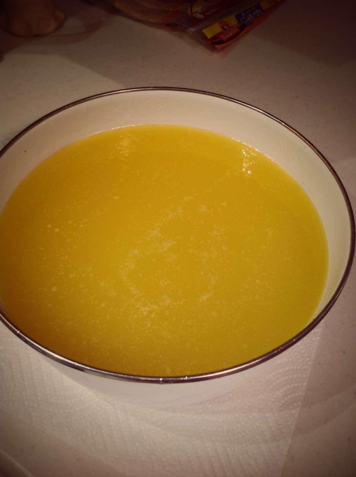 Strain it through a fine sieve to remove any remaining scummies. I used a piece of natural linen in my metal sieve. At this point you can strain it straight into your final storage container, it will harden to a creamy-white mass. Mine has the slightest hint of a beef smell when you stick your nose right up to it.